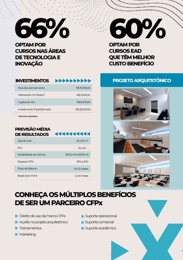 O CFP coloca a sua disposição a oportunidade de fazer curso de ensino profissionalizante, curso de aperfeiçoamento profissional, qualificação profissional e ensino técnico que serão o diferencial na sua carreira profissional.
